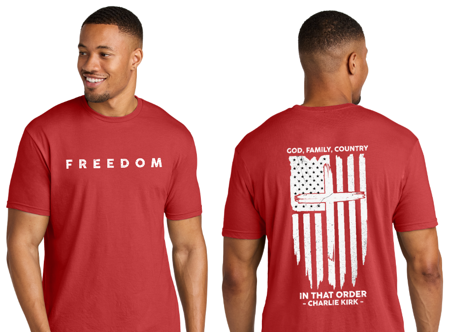 Premium Gildan Softstyle cotton/poly blend. Very comfortable.